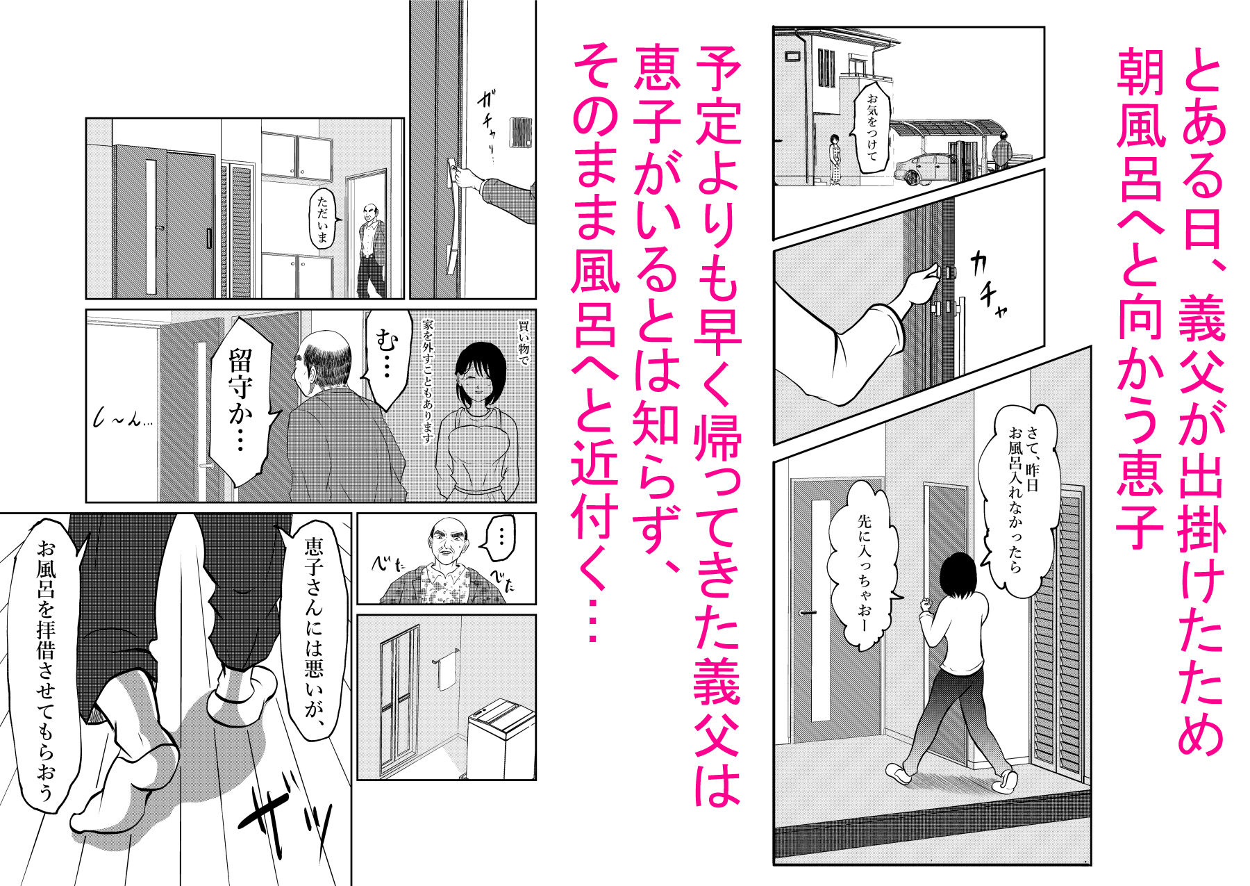 性欲が人一倍強く、恵子の豊満な身体に魅了された義父は、恵子との生活で徐々におかしくなってしまう。