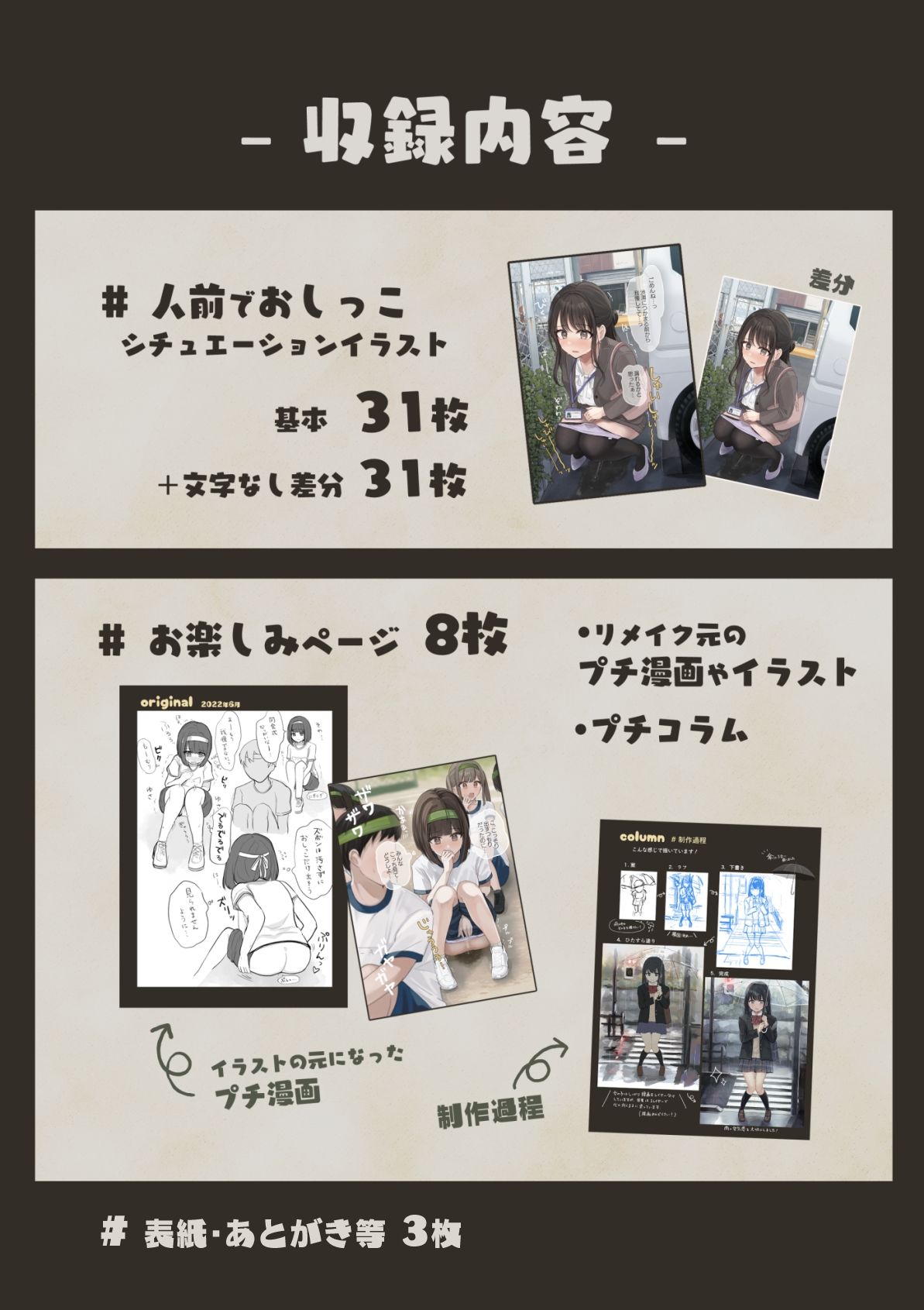 <#人前でおしっこ【シチュエーションイラスト集】>…計42ページ
