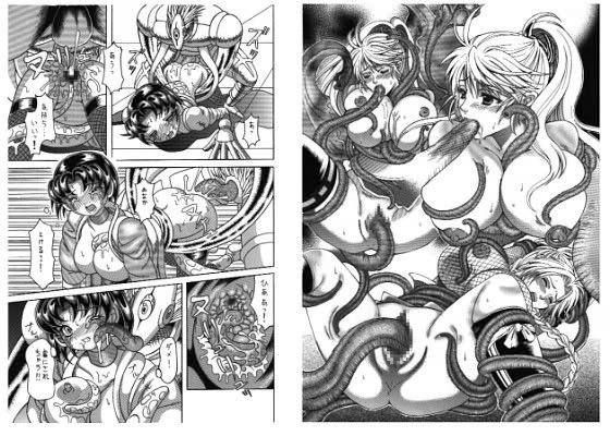 白い裸身を這いまわる触手に豊かな乳房を嬲られ、身を護るはずの鎖かたびらの上から鋭敏な乳首を責められ、容赦なく弄ばれる二人。