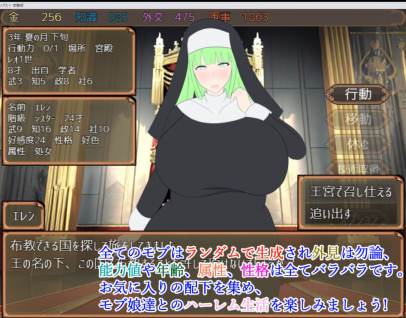 王様シミュレーションゲームですから、侍らす女の子はお好きにして下さい!
