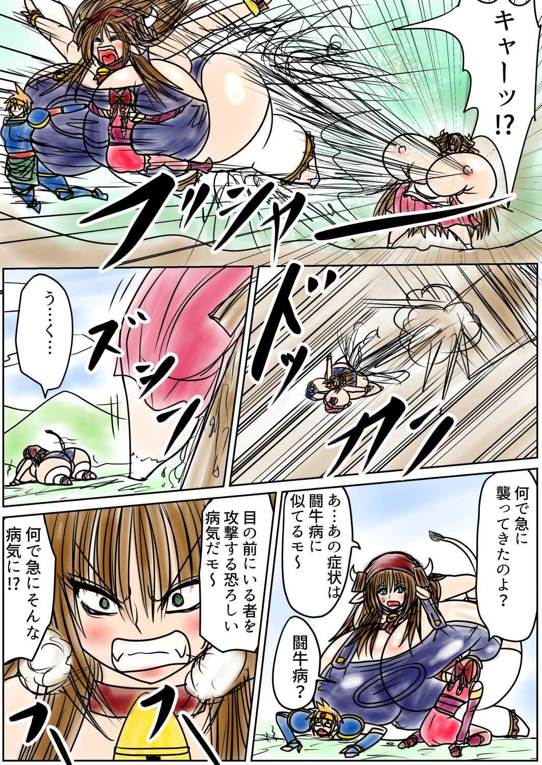 勇者は光の棒をモン女に差し込み大量の聖なる液(聖液)を注ぎ込み風船の様に膨らまし破裂させる。