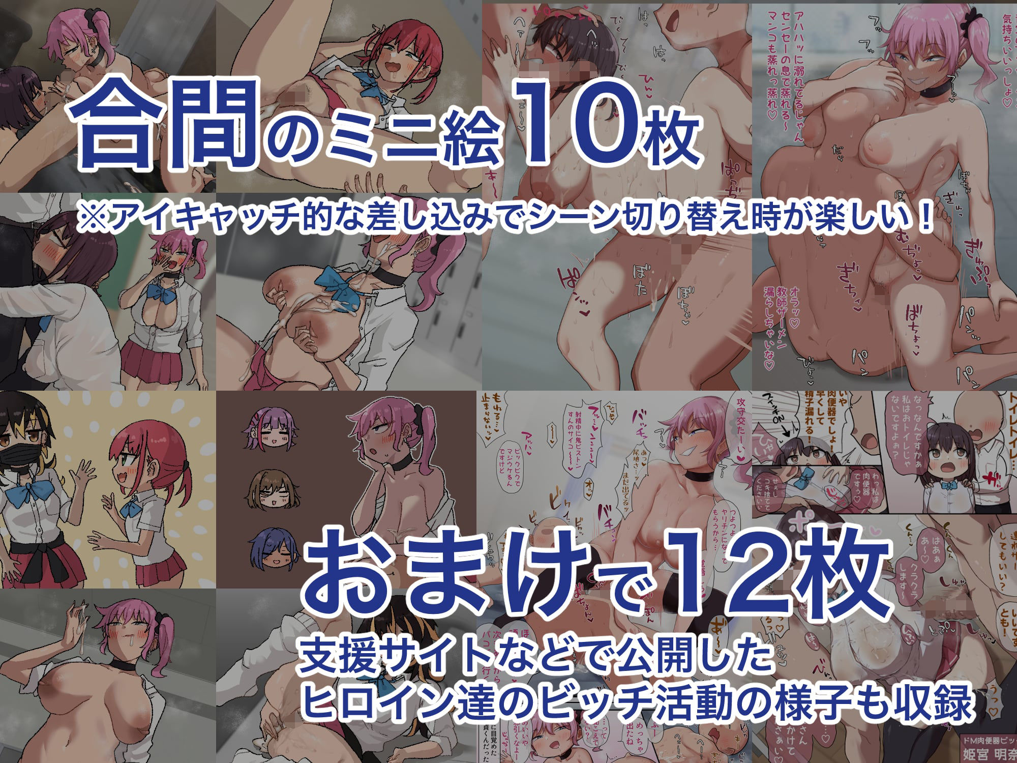おまけ12枚(支援サイトなどで公開したヒロイン二人のビッチ活動の様子) + 設定画2枚