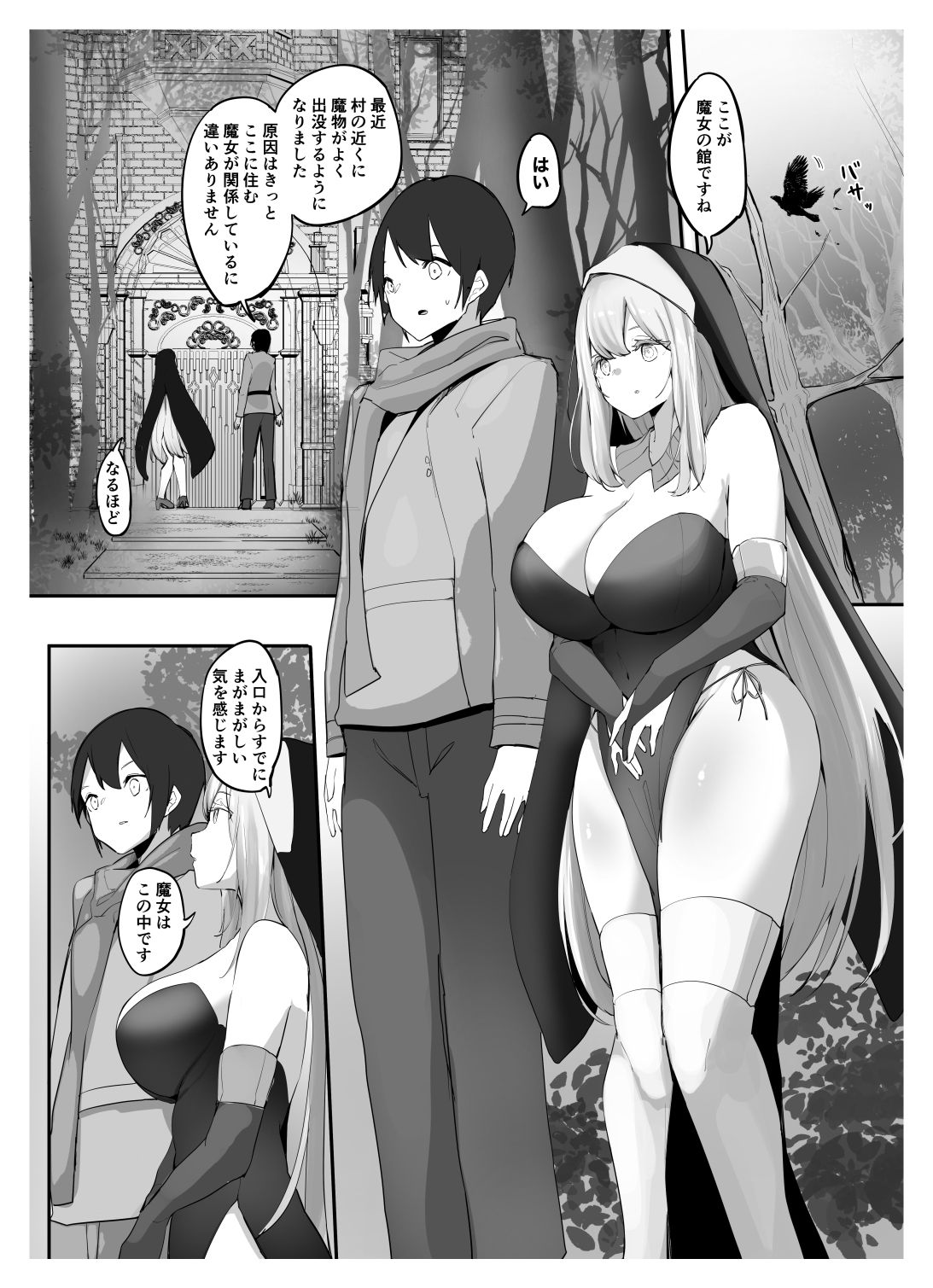 魔法がありふれた中世のどこかの森。村を悩ませる魔女がいると噂の館にやってきた村人ユーシャと街からの助っ人エレナ。いざ館に入ると魔女の返り討ちに会い魔法でユーシャの体を小さくされてしまう。ひとまず逃げ帰った二人だがエレナの様子が次第におかしくなっていき…