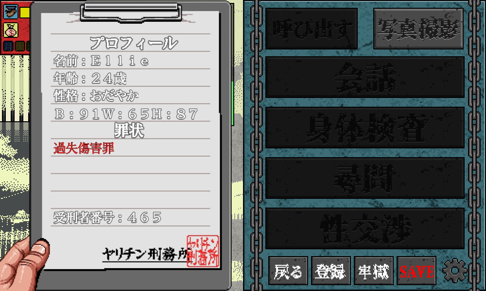 手描きドット!女囚100種以上!罪人に様々な調教を行い、屈服させて牢獄へ入れよう!どんな手を使ってでも、罪人に自分の犯した罪を自覚させろ!