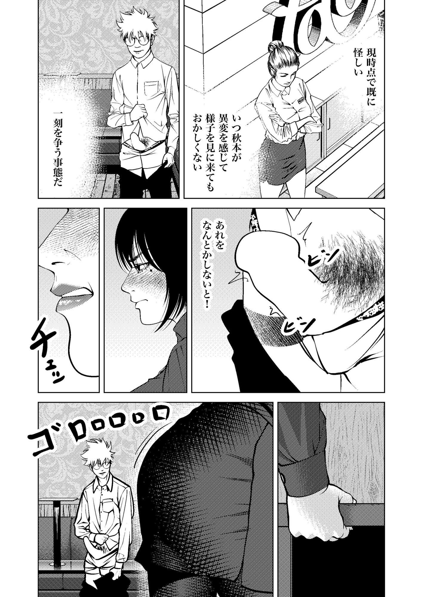 新しいズボンを持ってきても、サイズが合わない上、佐藤の勃起が収まらない。