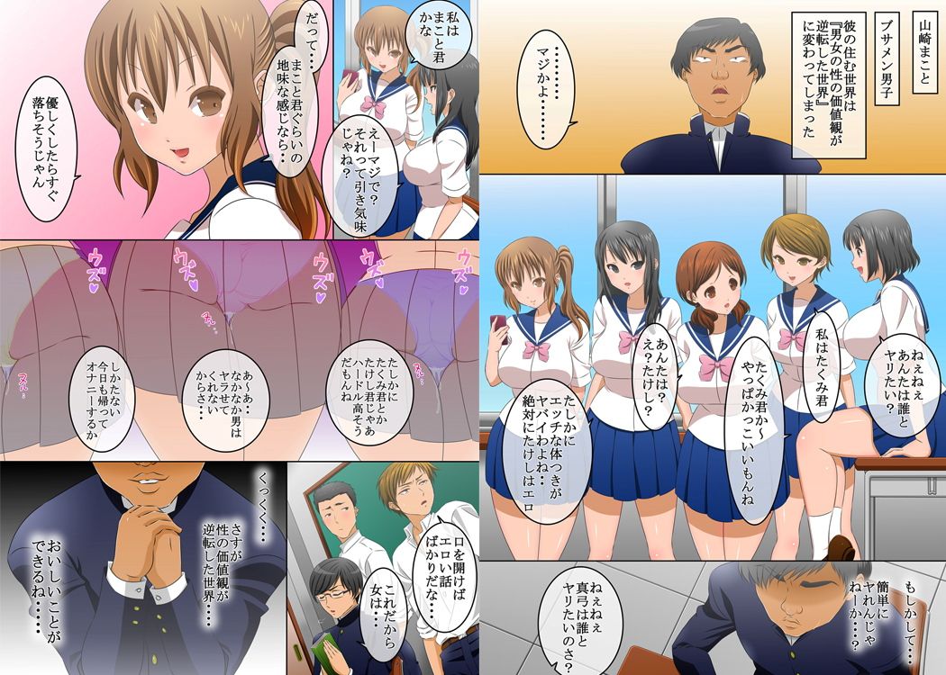 放課後…教室で今日も女の子たちがエッチな会話で盛り上がってる。そう、ここは貞操観念が逆転した世界なのだ。俺は処女を卒業したくて仕方がない真弓に狙いをさだめた…
