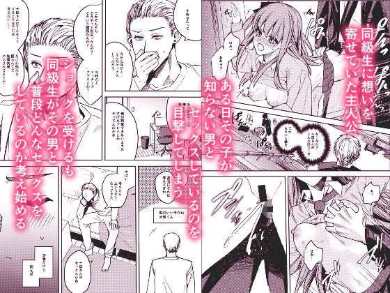オリジナルキャラクター、兎子ちゃん。その同級生はある日兎子ちゃんが見知らぬ男とセックスしているのを目撃してしまう。兎子ちゃんに思いを寄せていた同級生はショックを受けつつも、彼女がその男と普段どんなセックスをしているのか、妄想をし始めてしまう。
