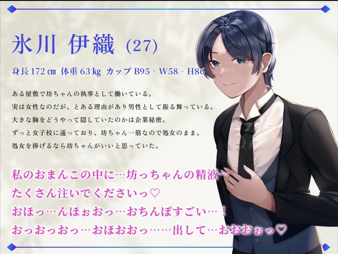 【イケメン女執事「坊ちゃん…これは口止め料です」男装麗人だった伊織さんがボク専用生ハメおまんこになった理由【1時間40分超え/ラブラブ/ボーイッシュ】】 作者名