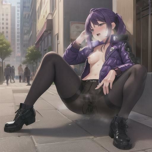 いけないと分かっていても我慢できずに露出してしまう紫髪ブルゾンちゃん…