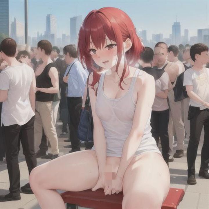 いけないと分かっていても我慢できずに露出してしまう赤髪タンクトップちゃん…