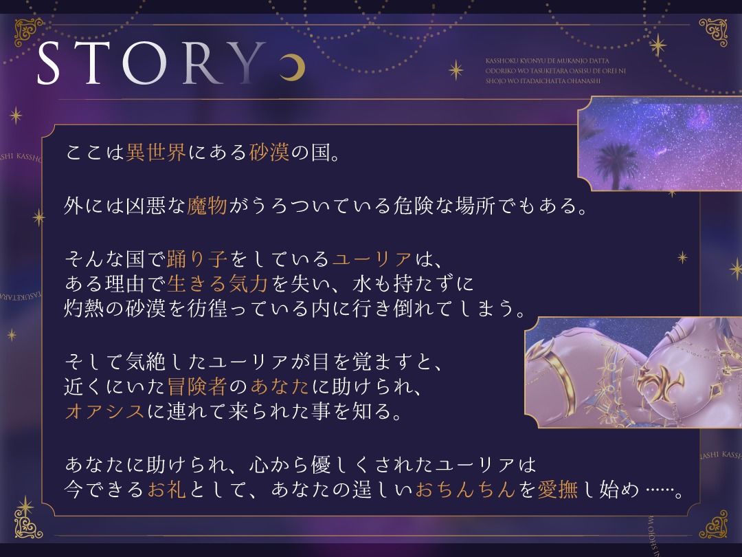 【KU100】褐色巨乳で無感情だった踊り子を助けたらオアシスでお礼に処女を頂いちゃった話【約2時間/癒し】 あらすじ