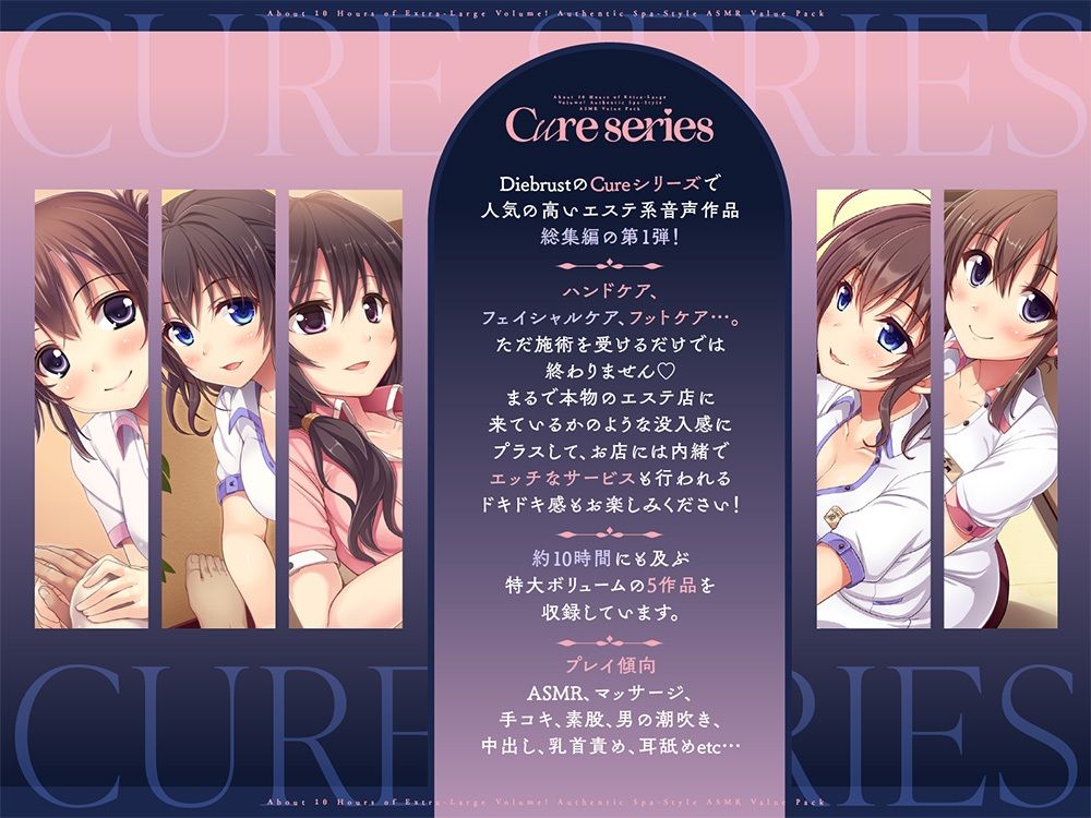 DiebrustのCureシリーズで人気の高いエステ系音声作品総集編の第1弾!