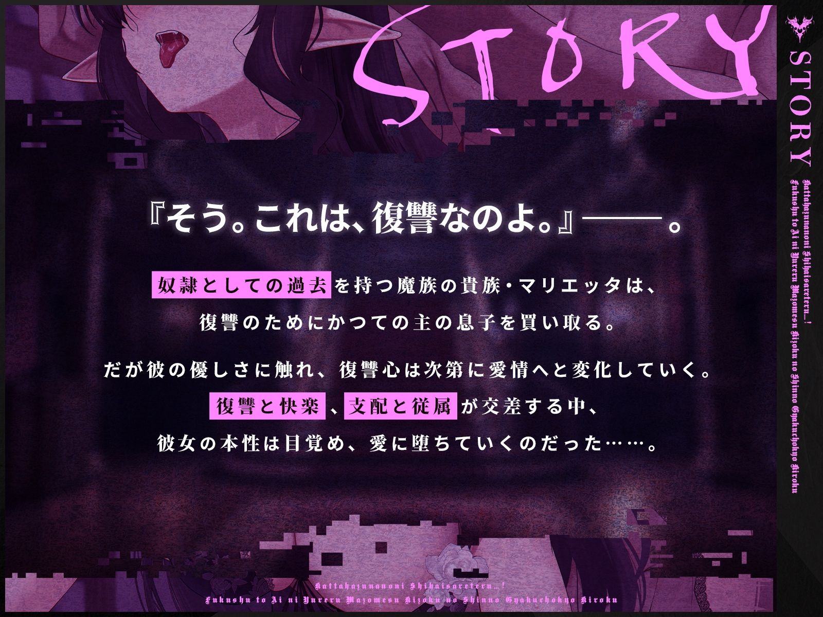 奴●としての過去を持つ魔族の貴族・マリエッタは、復讐のためにかつての主の息子を買い取る。