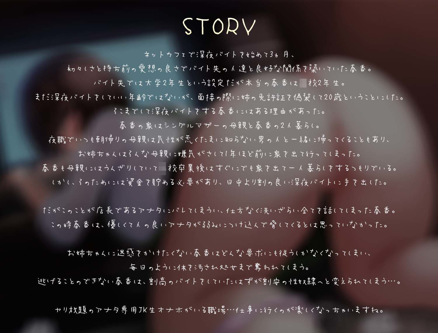 深夜のネカフェで働くJK生オナホ〜レ●プで精液まみれにされても絶対服従〜 あらすじ