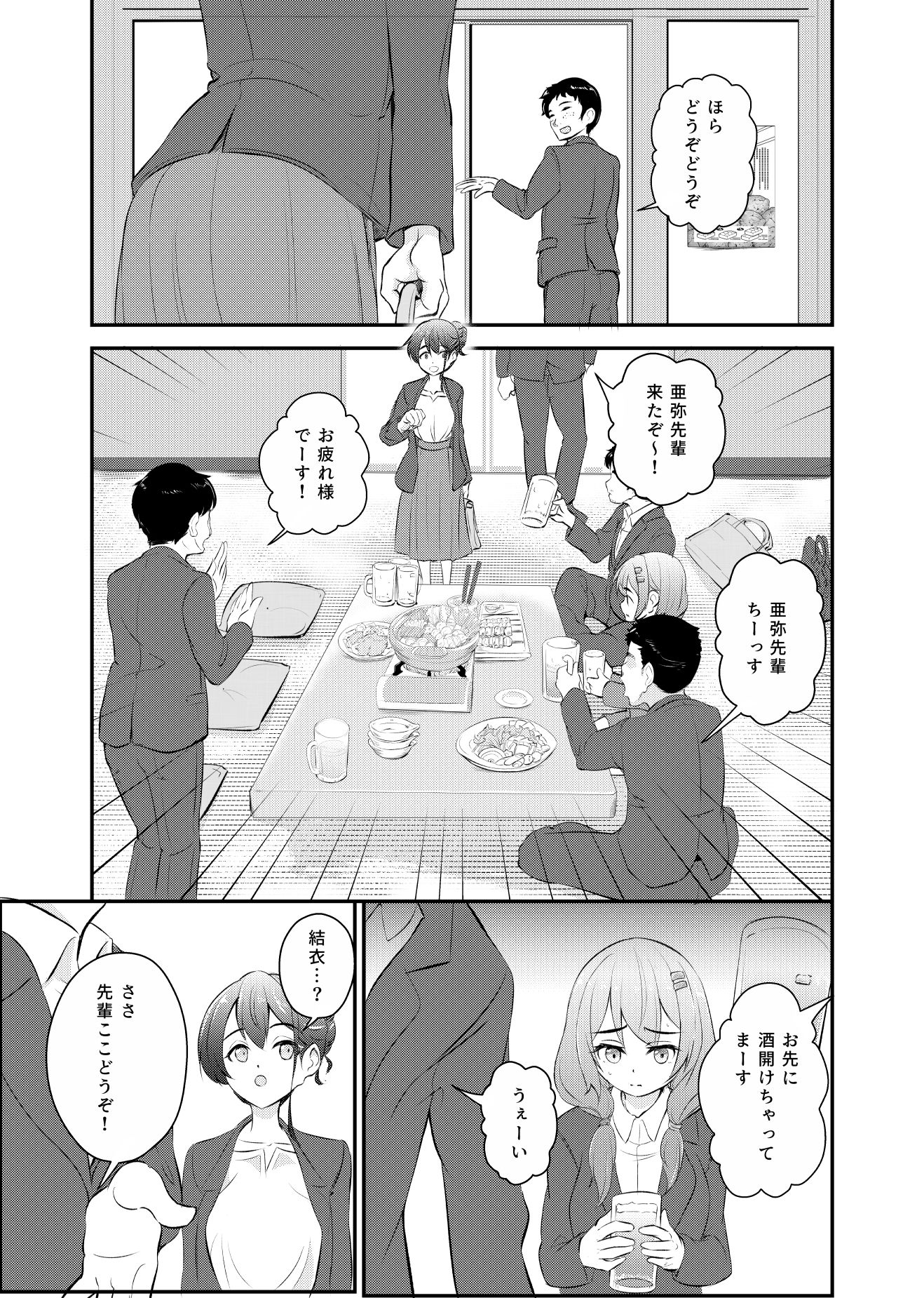 後輩社員・結衣がセクハラを受けている事に気づいた先輩OL・亜弥。