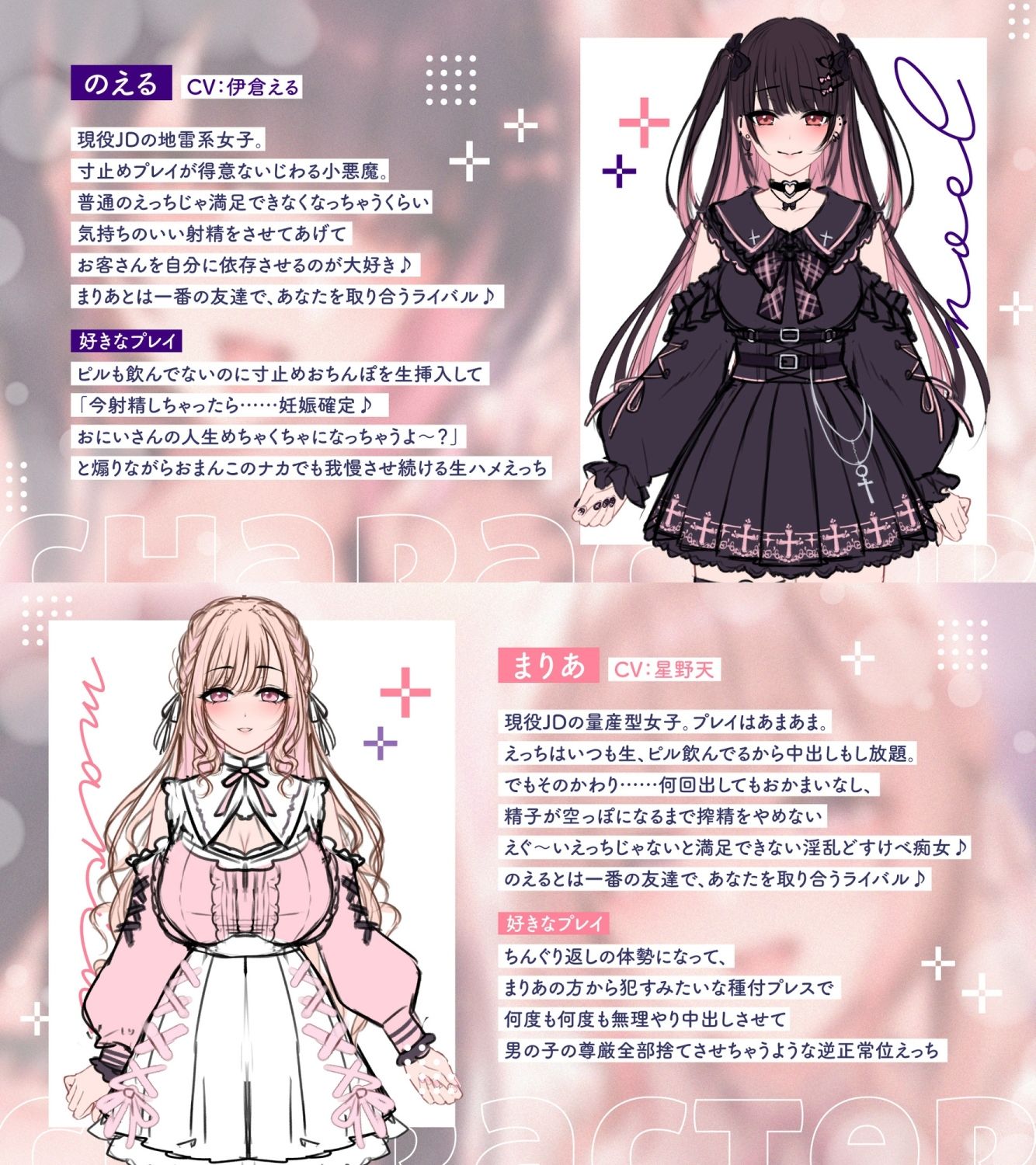 【両耳舐め300円】3Pヘルスへようこそ♪いじられ搾精コース〜地雷系JDのえるのいじわる寸止め射精&量産型JDまりあのあまあま連続射精〜【KU100】 あらすじ