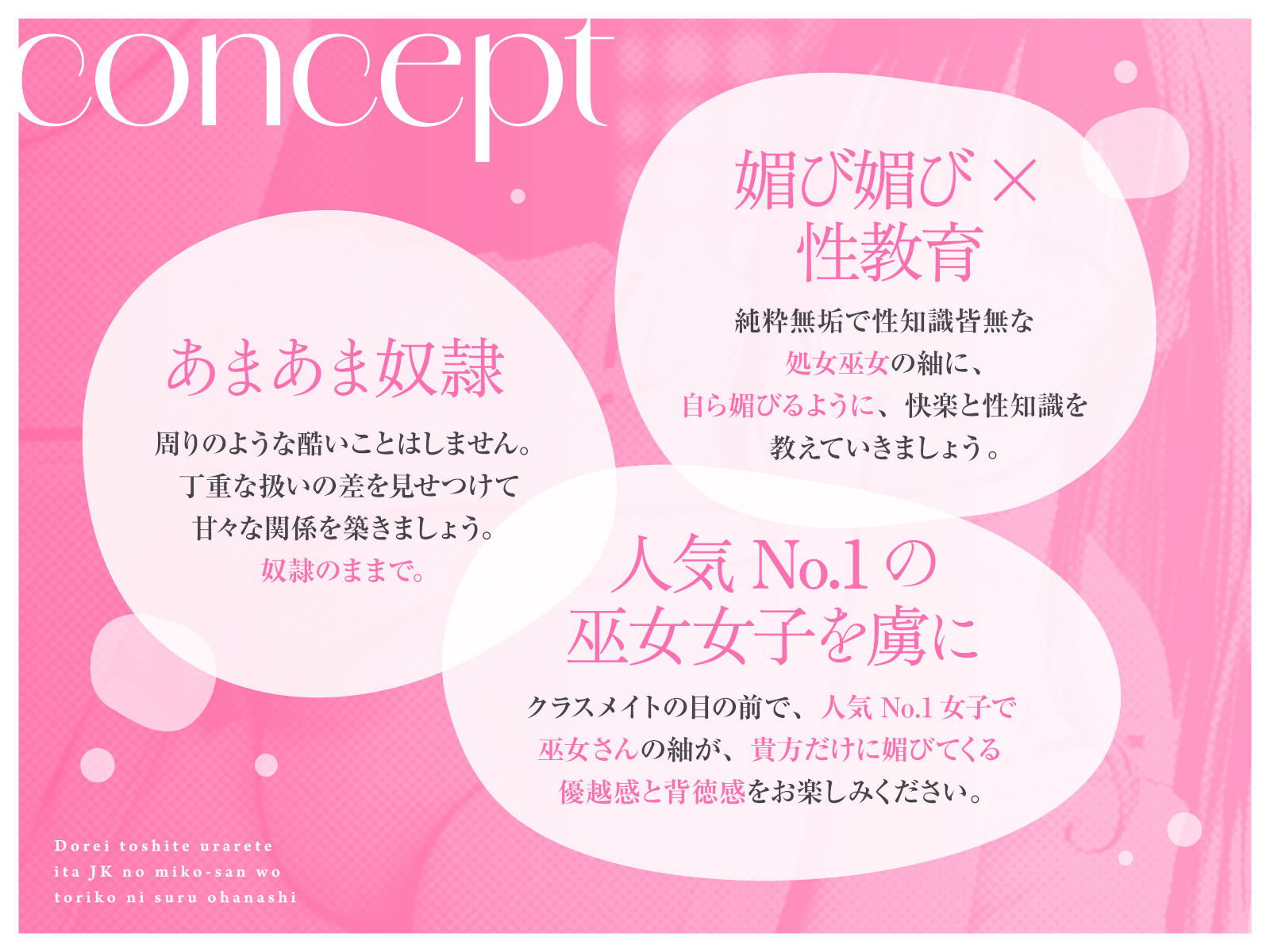 【【媚び媚び性教育】奴○として売られていたJKの巫女さんを虜にするお話】 作者名