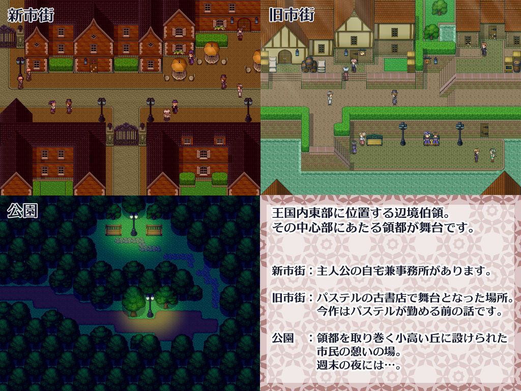 戦闘やレベル上げ、謎解き等のない短編ノベル風RPGです。