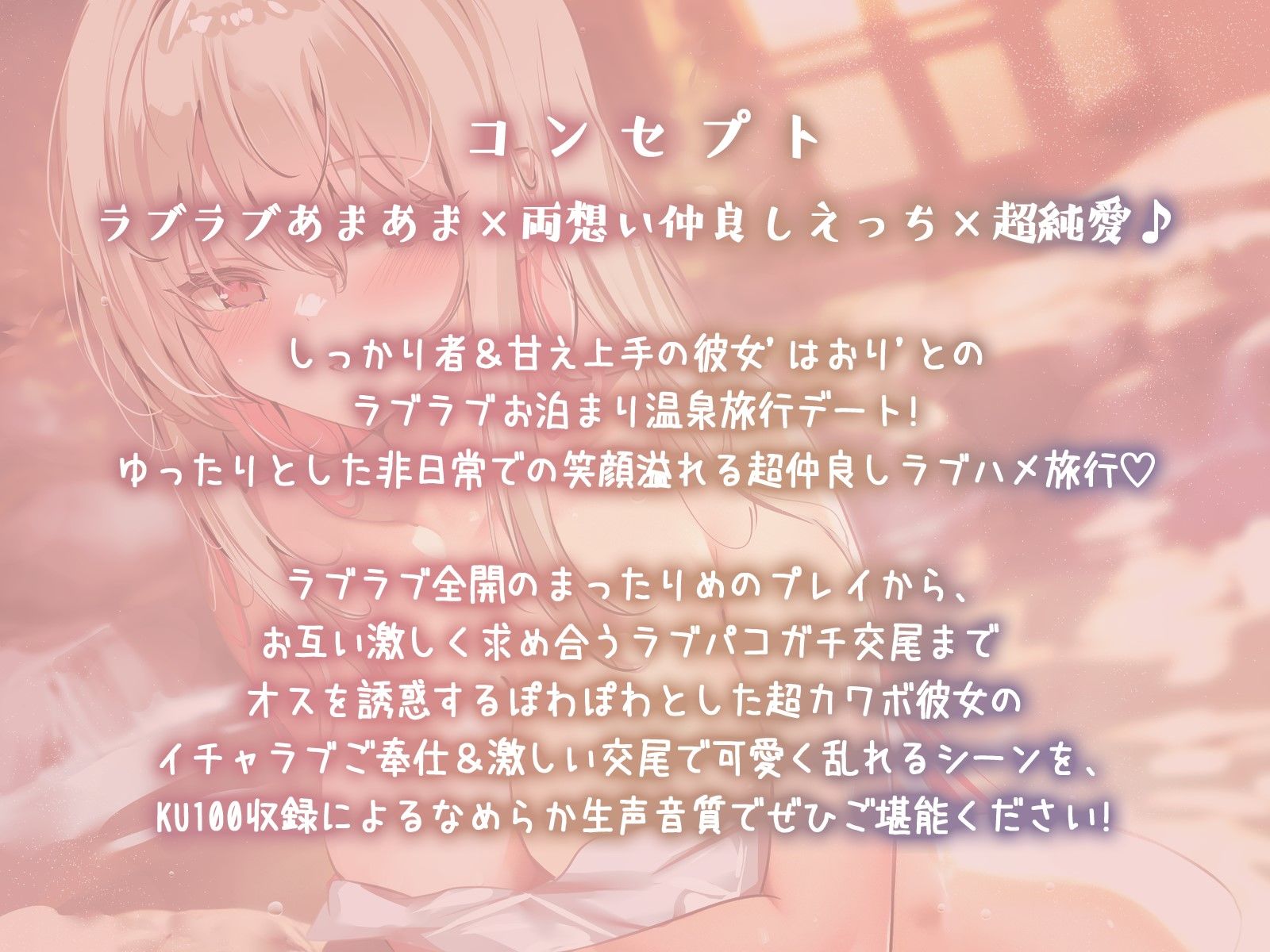 【KU100】2人っきりのトロ声&甘イキ温泉旅行♪ 仲良しカップルお泊まりラブラブ生ハメTrippin’♪ あらすじ