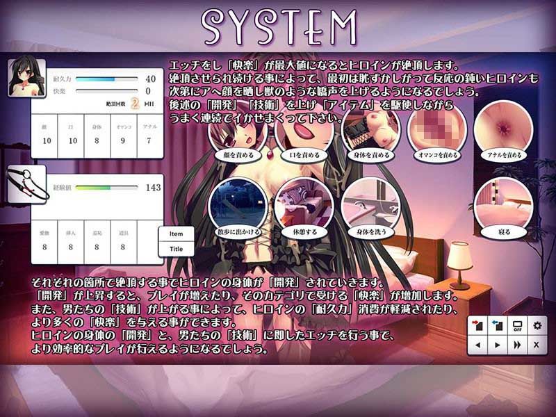 「アイテム」を使用したり装備すると、パラメータを調整したりエッチプレイ