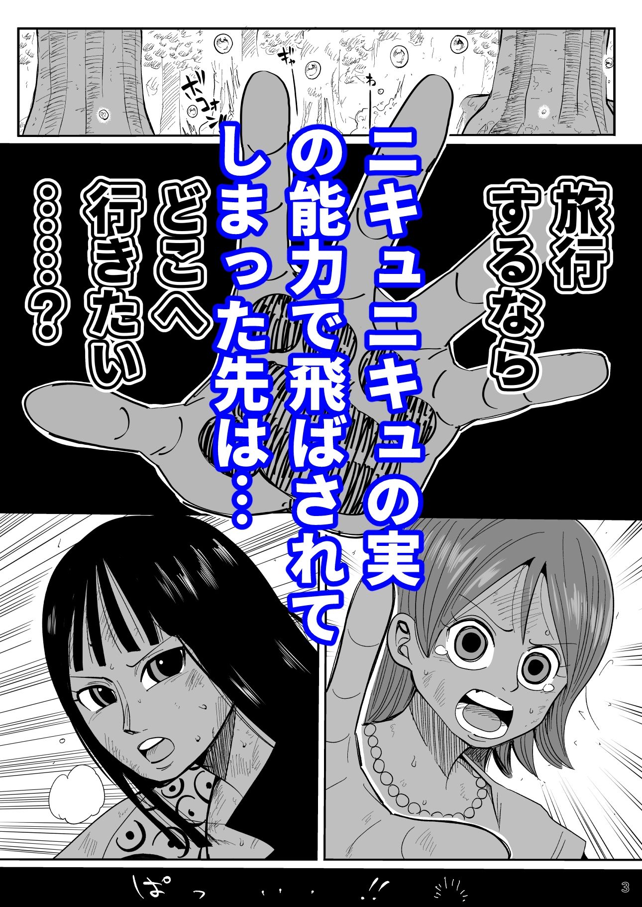 ニキュニキュの実の能力でそれぞれ違う場所で飛ばされたナミとロビンの2人。